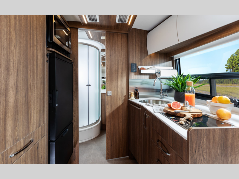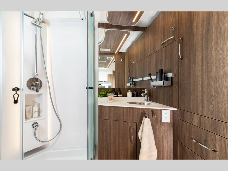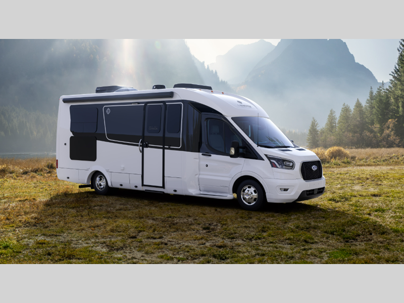 Sleeps 2 Slides 1 Length 24 ft 9 in Ext Width 7 ft 11 in Ext Height 10 ft Int Height 6 ft 3 in Interior Color Dove, Sand, Clay, Cool Ice (60th Anniversary Edition) Exterior Color Euro Sport, Silver, Graphite, Shadow, Glacier, Atlantic Blue, White Suede, Champagne, Diamond White (60th Anniversary Edition) GVWR 11000 lbs Fresh Water Capacity 33.5 gals Grey Water Capacity 26.4 gals Black Water Capacity 35 gals Generator 4.0kW Gas Fuel Type Gas Engine 3.5L Eco-Boost V6 Chassis Ford Transit Dual Rear Wheel Horsepower 310 hp Fuel Capacity 25 gals Wheelbase 178 in Available Beds Murphy Torque 400 ft-lb Refrigerator Type Compressor Refrigerator/Freezer Refrigerator Size 6.2 cu ft Convection Cooking Yes Shower Size 34" x 34" Number of Awnings 1 LP Tank Capacity 13.2 gal Water Heater Type Truma AquaGo Comfort Plus AC BTU 13500 btu Basement Storage 33 cu. ft. TV Info LR 40" Smart TV Awning Info Powered Box w/LED Lights Shower Type Radius Electrical Service 30 amp Similar Floorplans