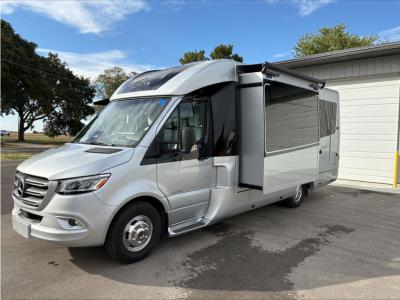 Sleeps 2 Slides 1 Length 24 ft 9 in Ext Width 7 ft 11 in Ext Height 10 ft Int Height 6 ft 3 in Interior Color Dove, Sand, Clay, Cool Ice (60th Anniversary Edition) Exterior Color Euro Sport, Silver, Graphite, Shadow, Glacier, Atlantic Blue, White Suede, Champagne, Diamond White (60th Anniversary Edition) GVWR 11000 lbs Fresh Water Capacity 33.5 gals Grey Water Capacity 26.4 gals Black Water Capacity 35 gals Generator 4.0kW Gas Fuel Type Gas Engine 3.5L Eco-Boost V6 Chassis Ford Transit Dual Rear Wheel Horsepower 310 hp Fuel Capacity 25 gals Wheelbase 178 in Available Beds Murphy Torque 400 ft-lb Refrigerator Type Compressor Refrigerator/Freezer Refrigerator Size 6.2 cu ft Convection Cooking Yes Shower Size 34" x 34" Number of Awnings 1 LP Tank Capacity 13.2 gal Water Heater Type Truma AquaGo Comfort Plus AC BTU 13500 btu Basement Storage 33 cu. ft. TV Info LR 40" Smart TV Awning Info Powered Box w/LED Lights Shower Type Radius Electrical Service 30 amp Similar Motor Home Class B+ Floorplans