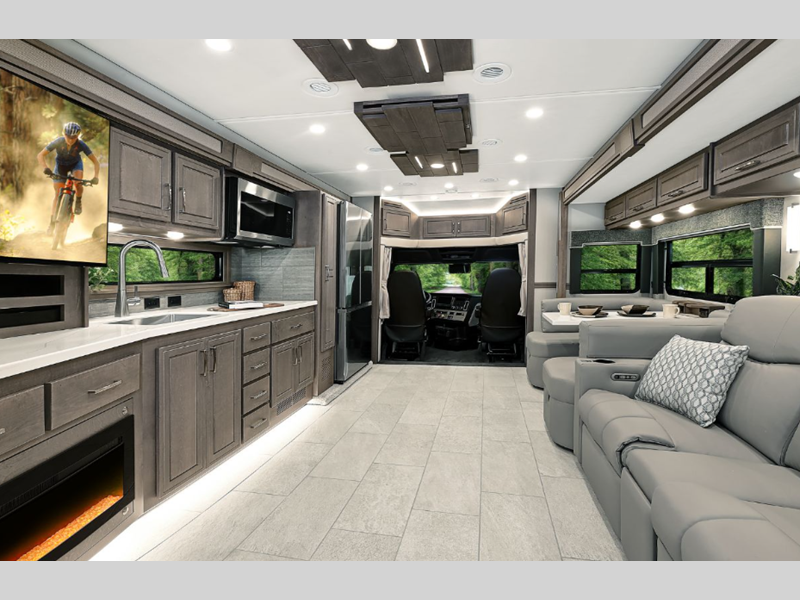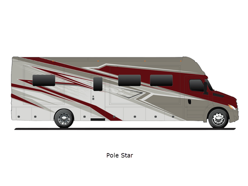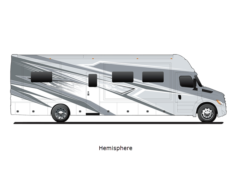 Sleeps 5 Slides 4 Length 40 ft 5 in Ext Width 8 ft 4 in Ext Height 13 ft 1 in Int Height 7 ft Interior Color Denali, Everest, Rainier Exterior Color Elevation, Hemisphere, Nautica, Nightfall, Pole Star, Polaris, Tundra, Atlas LR, Mojave Hitch Weight 20000 lbs GVWR 41000 lbs Fresh Water Capacity 150 gals Grey Water Capacity 75 gals Black Water Capacity 75 gals Generator 8kW Onan Quiet Diesel Fuel Type Diesel Engine Detroit DD13 Chassis Freightliner Cascadia Horsepower 525 hp Fuel Capacity 120 gals Available Beds RV King Torque 1850 ft-lb Refrigerator Type Residential French Door Stainless Refrigerator Size 18 cu ft Convection Cooking Yes Cooktop Burners 2 Number of Awnings 1 Water Heater Type 450D AquaHot Hydronic AC BTU 30000 btu TV Info 50" 4K Smart LED TV LR, 32" 4K Smart LED TV BR, 43" 4K LED TV Ext. Awning Info Girard 2-Stage with LED Lights Washer/Dryer Available Yes Shower Type Standard Electrical Service 50 amp Similar Floorplans