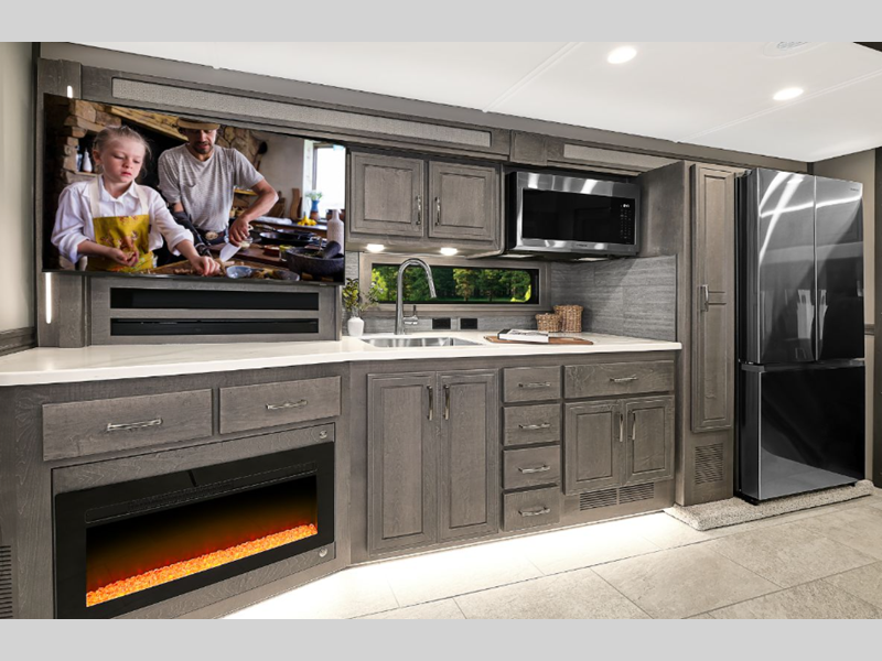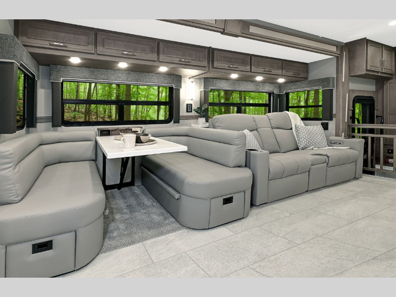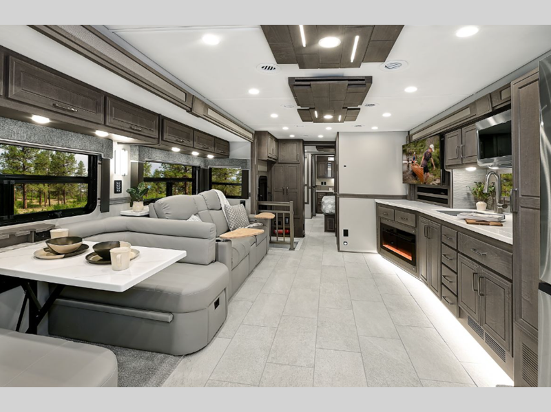 The Renegade Explorer Super C diesel motorhome is a force to be reckoned with! These coaches are built on a Freightliner Cascadia 116 chassis with 525HP and an Allison TRV4000 transmission or Detroit DT12 12-speed transmission. The Explorer's style is very modern and luxurious, and the appliances are top notch.